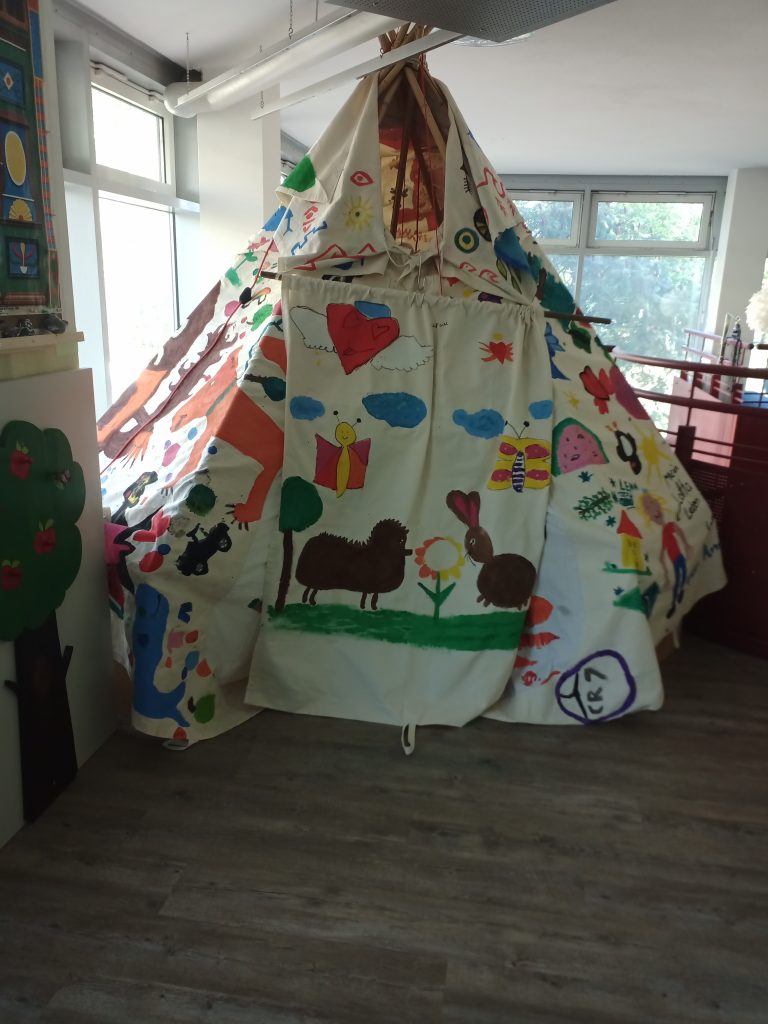 Im Mai und Juni 2024 bemalten Grundschulkindermit Pinsel und Farben in Regie einer Künstlerin ein großes weißes Tipi-Zelt. Seit September 2024 gibt es wöchentlich Zauber-, Helden oder Gruselgeschichten mit kleinen Überraschungen. Die Tipi-Abenteurer werden von der Stiftung Lesen gefördert.